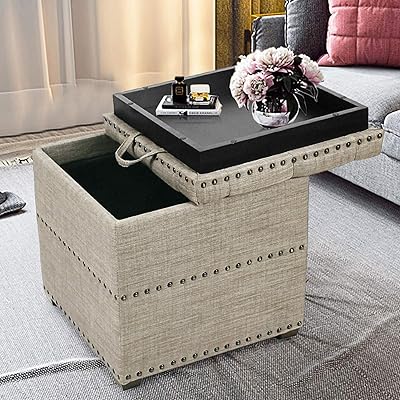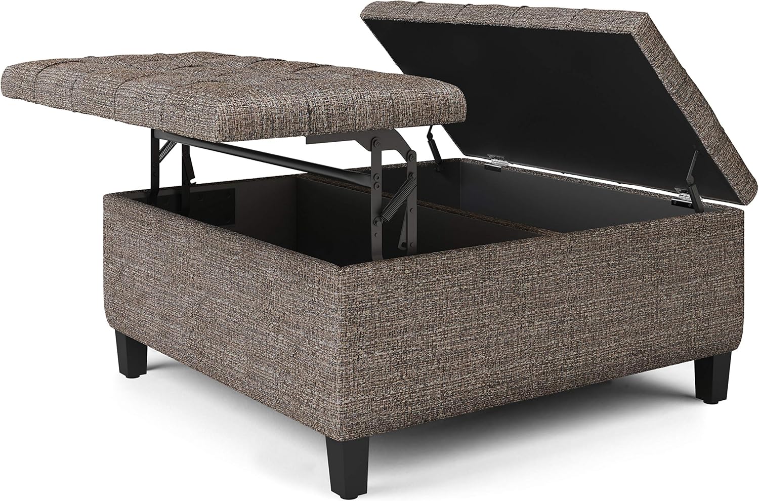 Fabric Storage Ottoman Coffee Table - Simpli Home Harrison 36 Inch Wide Square Coffee Table Lift Top Storage Ottoman Traditional Cocktail Footrest Stool In Upholstered Fawn Brown Tufted Linen Look Fabric For The Living Room Furniture Accent Furniture / Storage ottoman coffee table with reversible tray tops: